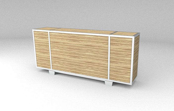 ground steel frame, zebrawood cladding