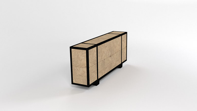 blackened steel frame, white oak butt cladding