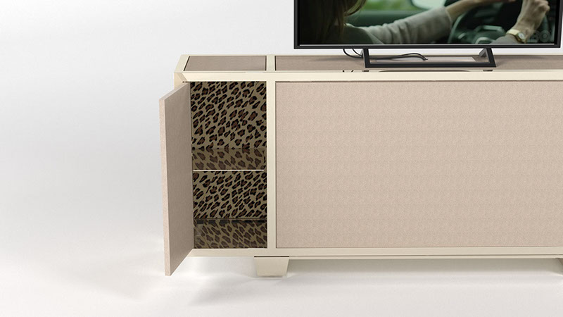 Polished Nickel frame, Ivory Shagreen cladding, Cheetah interior